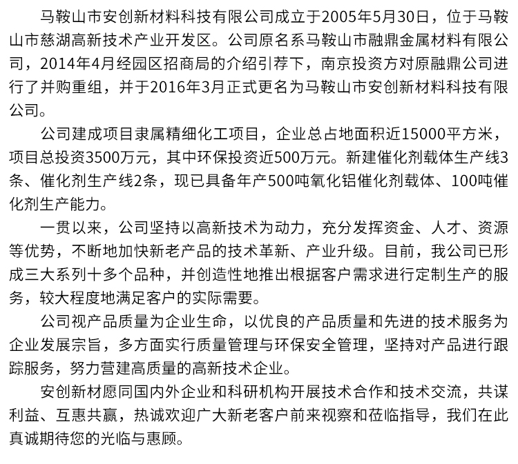 主要特點:采用FX01型原粉制備的載體,雜質(zhì)含量低,外形、尺寸、孔容、比表面可調(diào)。